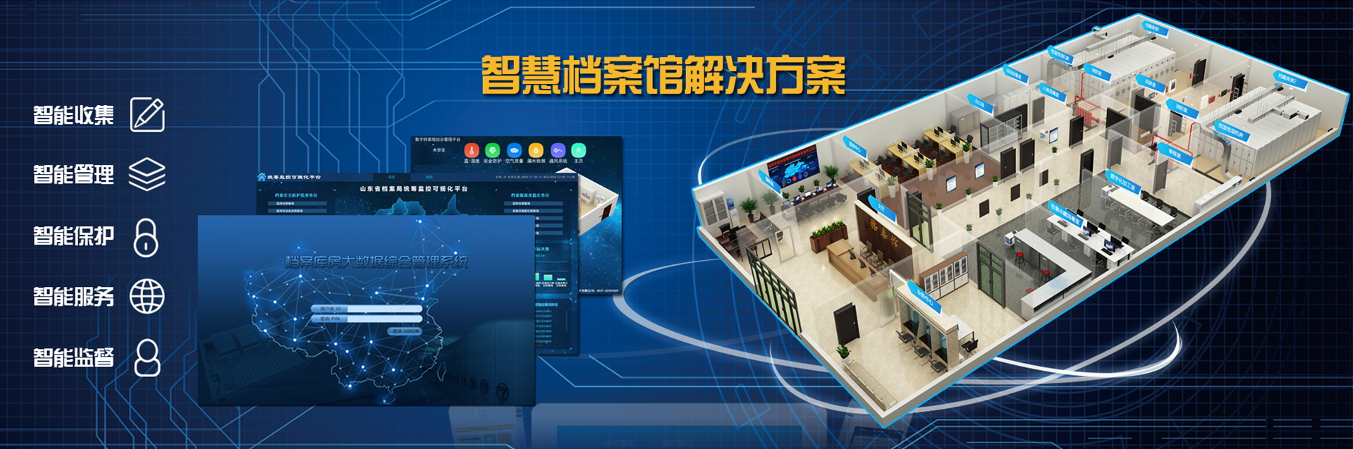 國韻作為山東省檔案庫房智能化綜合管理系統(tǒng)建設(shè)的龍頭企業(yè),為濱州市市政府設(shè)計并建設(shè)了一整套檔案庫房智能化綜合管理系統(tǒng),該系統(tǒng)將溫濕度自動測控、智能防火、智能防盜、消毒滅菌、漏水檢測、通風換氣、照明測控、視頻監(jiān)控、門禁管理、防鼠防蟲、有毒氣體檢測顯示系統(tǒng)等集成于統(tǒng)一管理平臺...